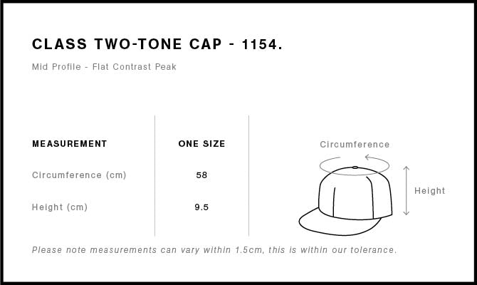 Introducing the AS Colour Class Two-Tone Cap: A lightweight, mid-profile five-panel cap crafted from 100% cotton. Featuring a stylish contrast dome, flat peak, plastic snapback closure, and tonal eyelets for ventilation. One size fits all, with the convenience of a tear-out AS Colour label for customised wear.