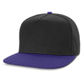 Premium structured five panel cap which is made from cotton twill. It has a flat peak, embroidered eyelets, a sweatband and an adjustable snap back closure that allows one size to fit most people.