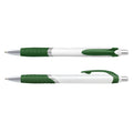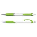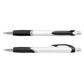 Retractable plastic ballpoint pen with a white barrel, a soft-touch grip and shiny chrome trim. It has a black or blue refill with 1200 metres of German manufactured Dokumental ink.