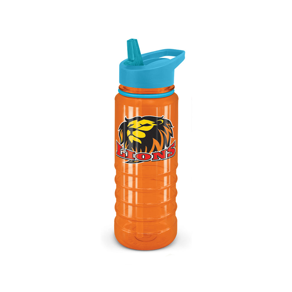 Classic 750ml drink bottle that is manufactured from Tritan, which is odour-resistant and BPA-free. It has a secure screw on lid that has a carry handle, a flip out drinking valve with a straw, and a decorative silicone ring. The bottle, lid and silicone ring can be mixed and matched in any colour combination from the colour palette at no extra cost. This product is not dishwasher safe and handwashing is recommended.