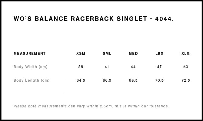 Construction: Narrow racer back detail, self-fabric facing at neck and armholes, double needle bottom hem, preshrunk to minimise shrinkage.