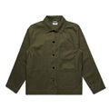 Construction: Three pocket, collared shirt jacket, unlined, gathered back at yoke, corozo buttons to close.