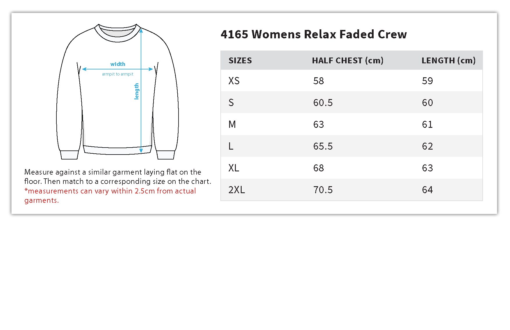 Construction: Pre-shrunk to minimise shrinkage, pullover crew, drop shoulder, crew neck, garment dyed, sleeve cuff ribbing