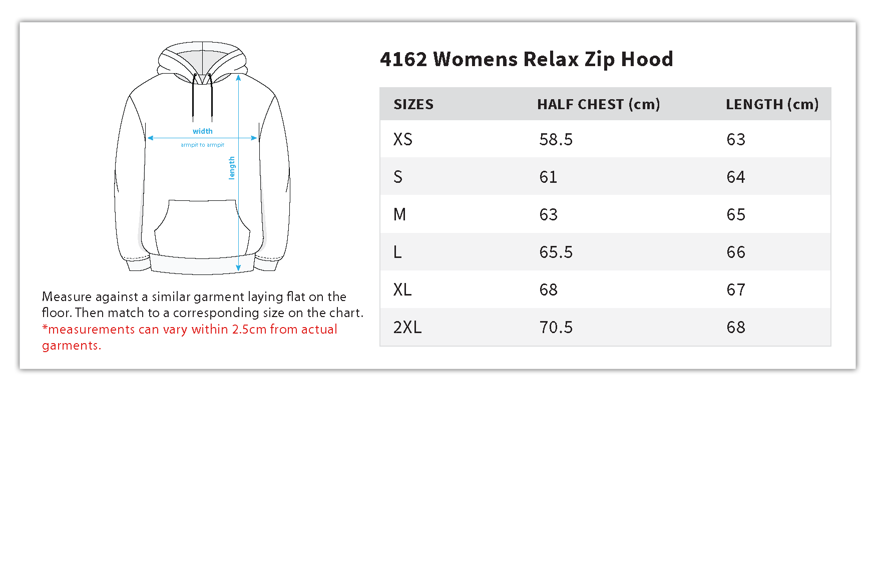 Construction: Pre-shrunk to minimise shrinkage, zip hood, drop shoulder, kangaroo pocket, self-fabric lined hood, no drawcord, YKK zip, sleeve cuff ribbing