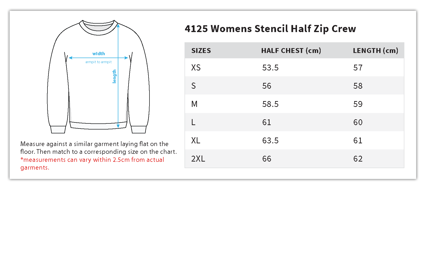 Construction: Mock neck, silver SBS zip at front placket, sleeve cuff & hem ribbing, preshrunk to minimise shrinkage